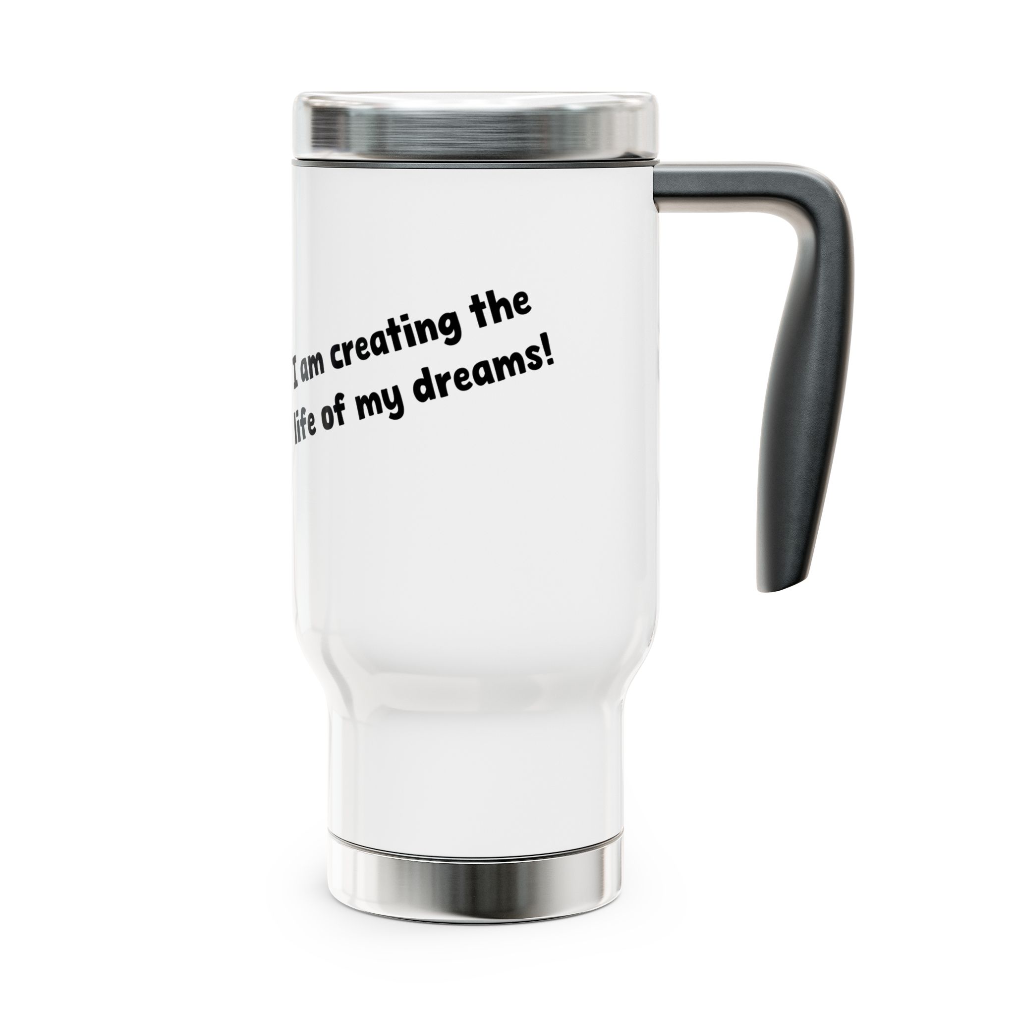This quote travel mug with the saying ‘I am creating the life of my dreams!’ is perfect for those who appreciate optimism and positivity in their everyday life. It adds a touch of inspiration to your daily on-the-go beverage. Ideal for coffee lovers, coworkers, friends, and family members. Great for birthdays, holidays, or just because gifts.