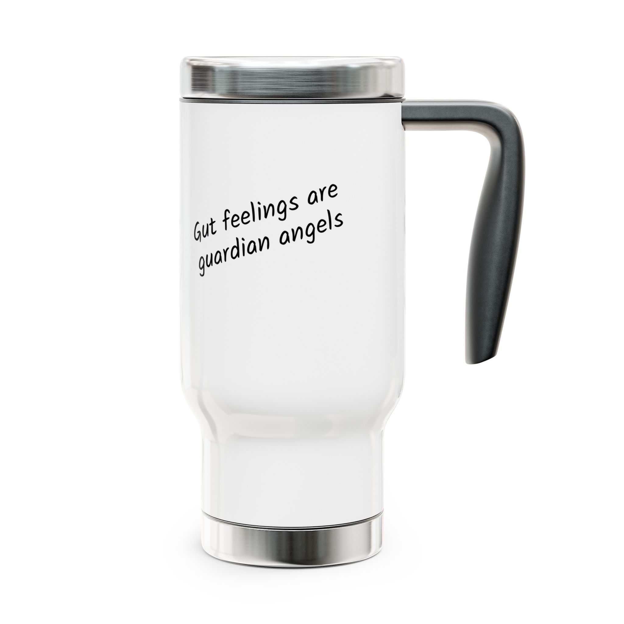 This funny quote travel mug with the saying ‘Gut feelings are guardian angels’ is perfect for those who appreciate humor and positivity in their everyday life. It adds a touch of whimsy and inspiration to your on-the-go beverage of choice. Ideal for coffee lovers, coworkers, friends, and family members. Great for birthdays, holidays, or just because gifts.