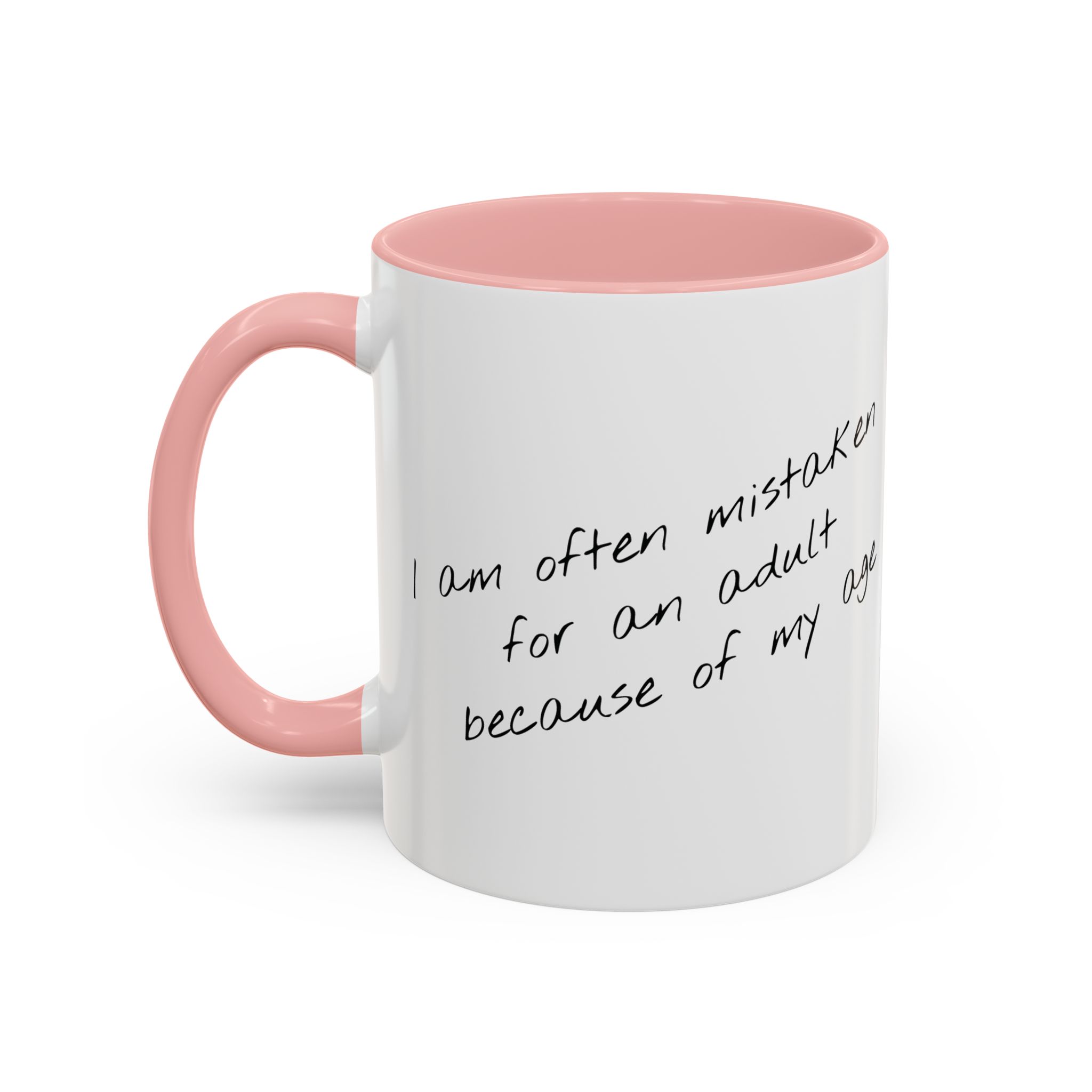 This funny quote mug with the saying ‘I am often mistaken for an adult because of my age’ is perfect for those who recognize the humor of growing older without growing up.. It adds a touch of whimsy to your morning coffee routine. Ideal for coffee lovers, coworkers, friends, and family members. Great for birthdays, holidays, or just because gifts.